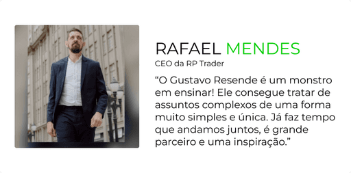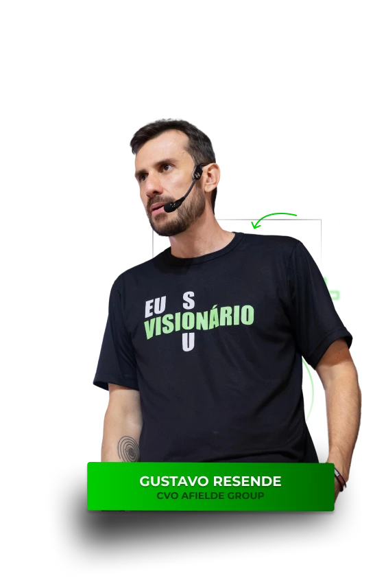 Empresário serial, Gustavo Resende é Idealizador do AFIELDE Group e do aplicativo SinApp. Um mineiro apaixonado por queijo, por viajar o mundo e por se desafiar diariamente. Já treinou equipes das maiores empresas do Brasil como Grupo Boticário, Porto Seguro, Ifood, Ambev e Votorantim. Além disso, formou mais de 2.500 mil líderes como professor do Curso de Liderança e de Pós Graduação da Escola Conquer. Gustavo, ainda é escritor nas horas vagas, sendo autor do livro O Maior Problema do Negócio Sou Eu. Por fim, Gustavo tem uma filosofia de vida: tudo é possível para aquele que está disposto a fazer o que for necessário para alcançar seus objetivos.